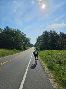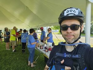 During this leg of the ride, my wallet and phone took an unexpected detour out of my pack! In a frantic search, I traversed a hill three times, hoping to locate them. Despite being just a mile from the final rest stop, it was the kindness of fellow volunteers and one particularly compassionate cyclist who joined me in the search that led to the miraculous recovery of my phone and belongings, all intact. I then continued the journey, accompanied by a wonderful group of cyclists.
